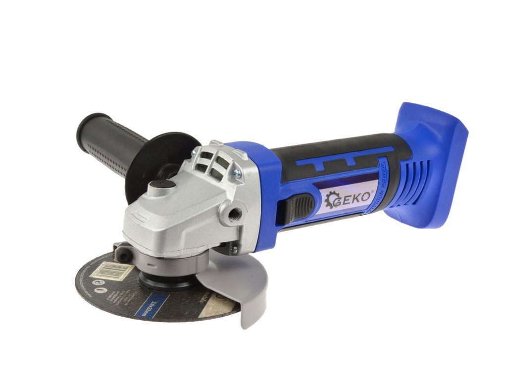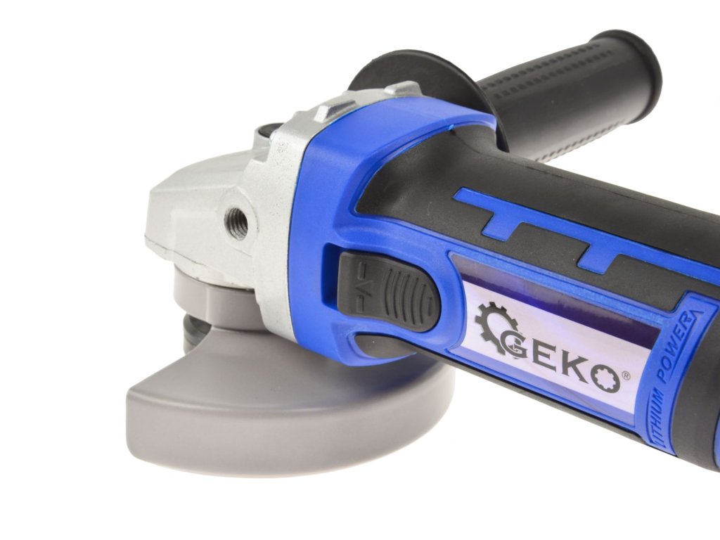Akumulátorová uhlová brúska 115 mm patrí do rodiny akumulátorového náradia Geko One Power System, je napájaná 18 V akumulátormi. Pomocou odmontovateľnej rukoväti je uhlová brúska vhodná pre ľavákov aj pravákov. Brúska má protišmykovú rukoväť pokrytú gumou Soft Grip a nastaviteľný kryt rezného kotúča.
