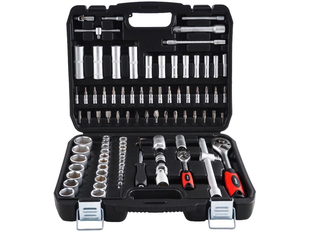 Praktická veľká kvalitná gola sada vyrobená z ocele chróm-vanádium. Všetky prvky a nadstavce sú uložené v plastovom kufríku.