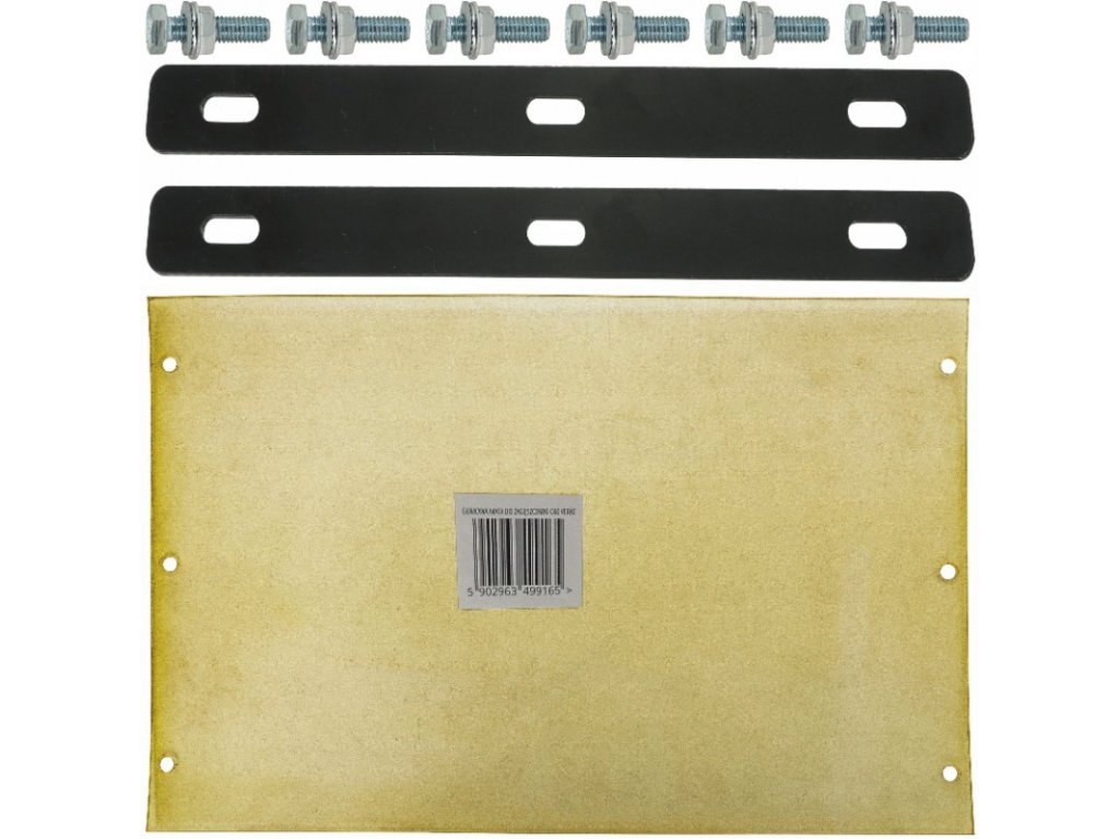 Gumová podložka je vyrobená pre vibračné dosky s rozmermi 54 x 37 cm. Podložka vyrobená z plastu sa dodáva s upínacími skrutkami.