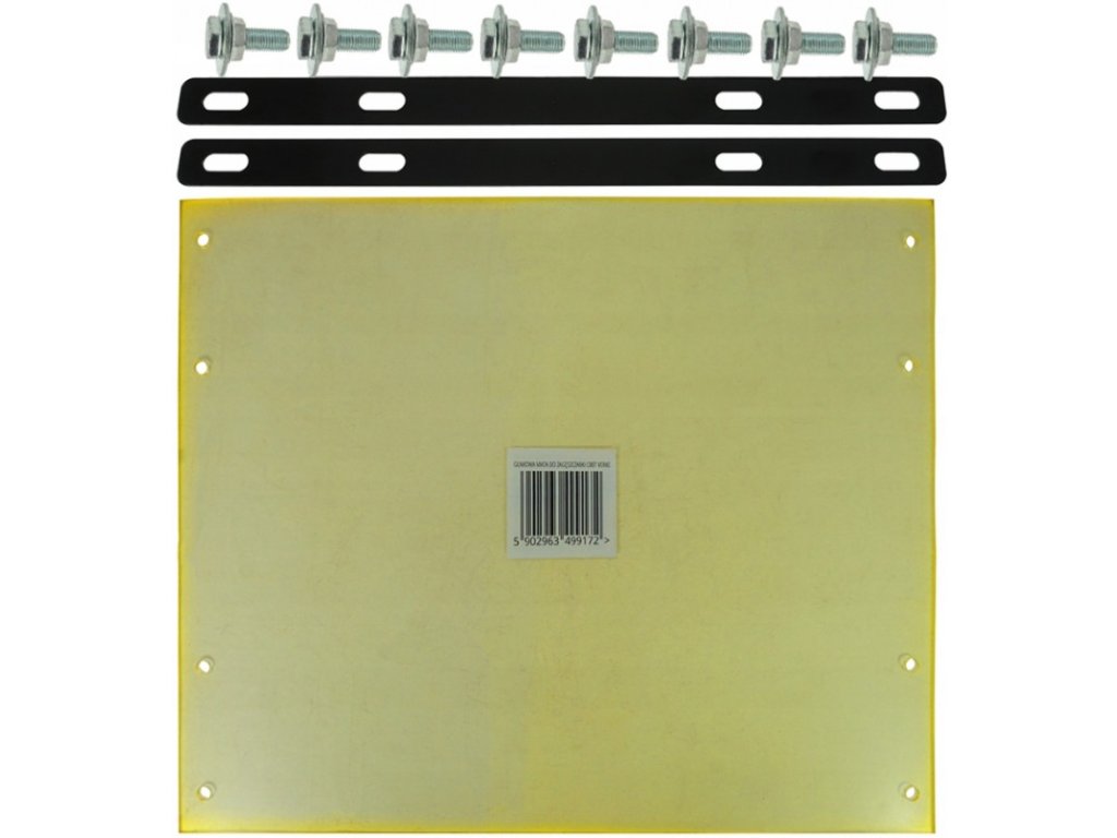 Gumová podložka je vyrobená pre vibračné dosky s rozmermi 56 x 48 cm a hmotnosťou 80 kg. Podložka vyrobená z plastu sa dodáva s upínacími skrutkami.