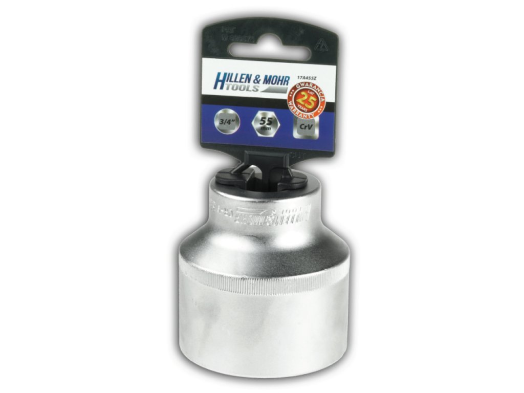 Hlavica je vyrobená z chróm-vanádiovej ocele, čo zaručuje jej vysokú pevnosť a tvrdosť. Hlavica je prispôsobená na prácu s račňami, kĺbmi a predĺženiami, s montážnou rukoväťou 3/4 ". Vnútorná časť objímky je šesťhranná, čo zaručuje dobré dosadnutie objímky na odskrutkovaný alebo utiahnutý prvok.
