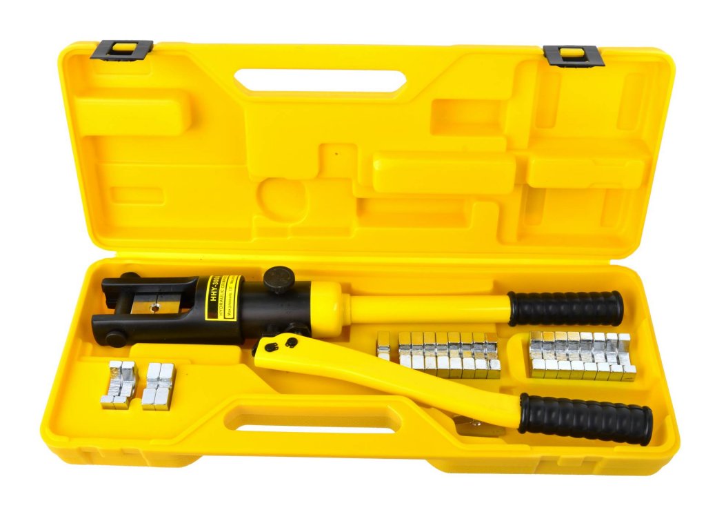 - Lisovacie kliešte na koncovky káblov s hydraulickým posilňovačom.