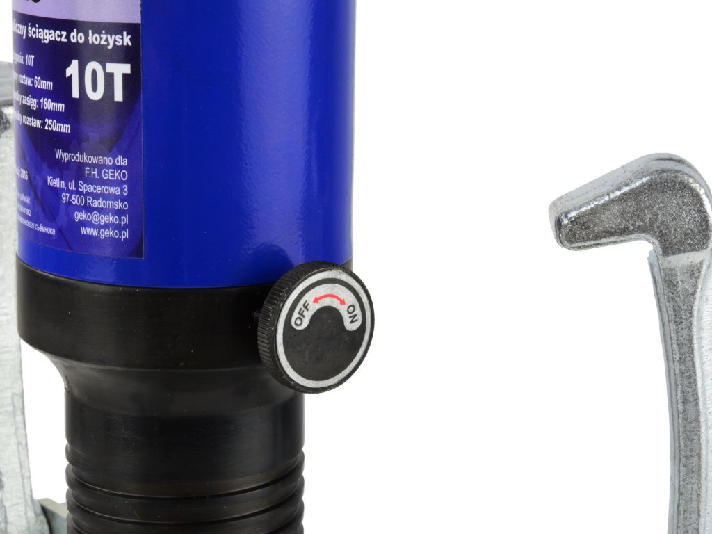Sťahovák ložísk remeníc a puzdier s hydraulickou ručnou pumpou so silou až 10 t, je flexibilný, námahu šetriaci prípravok kompaktnej konštrukcie, prijateľných rozmerov, ľahko premiestniteľný. 3 výklopné ramená disponujú 2 výškovými polohami. Teleso s pumpou je opatrené závitom pre nastavenie dosahu ramien až 160 mm, rozsah max. 250 mm, chod piestu hydraulického valca 60 mm. Dodávané v plastovom kufríku.