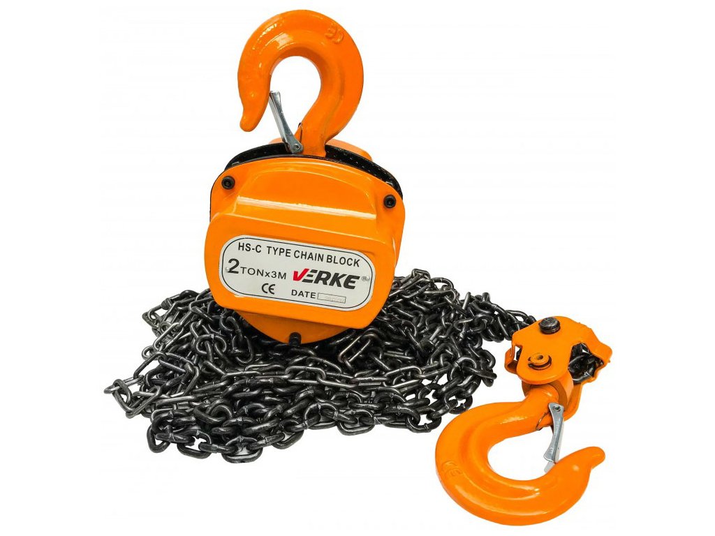 Reťazový navijak VERKE má ručný pohon a prevodový stupeň, ktorý vám umožní zdvihnúť hmotnosť až do 2000 kg. Reťaz je vyrobená z vysoko kvalitnej ocele. Články spojené odporovým iskrovým zváraním, ktoré zaručuje správnu kvalitu a pevnosť. Navijak je vybavený bezpečnými hákmi, ktoré majú blokovanie zabraňujúce rozopnutí nákladu.
