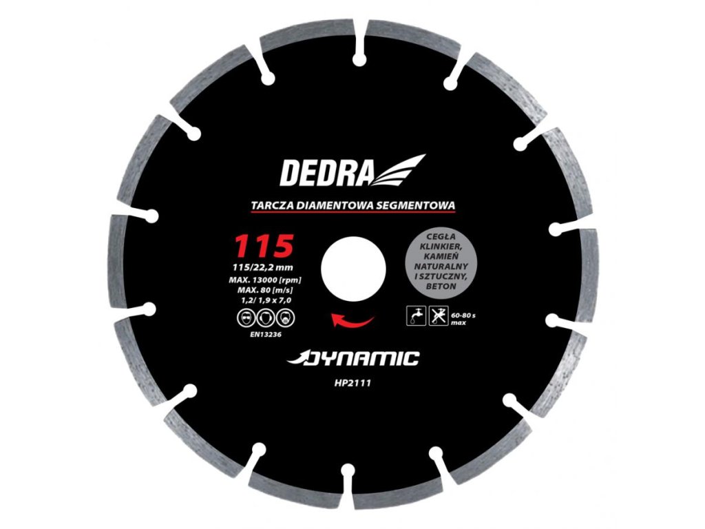 Diamantový segmentový kotúč Dynamic na rezanie betónu, tehly, lícovej tehly, prírodného a umelého kameňa značky Dedra.