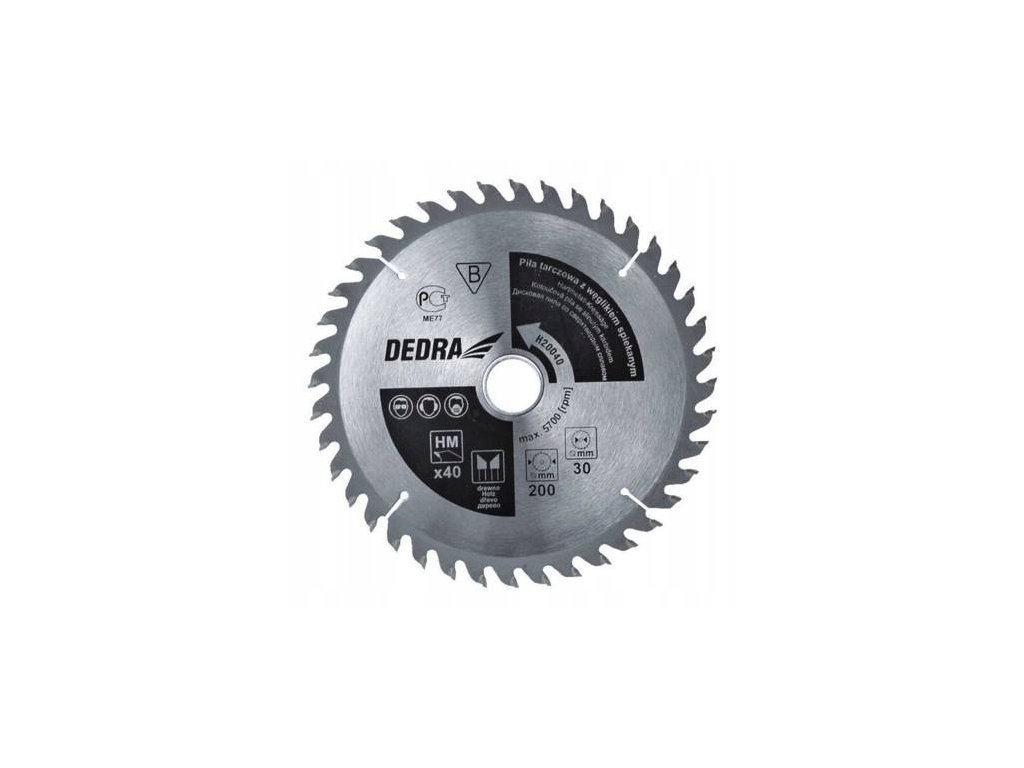 Kotúčová píla na drevo DEDRA H30080 s tvrdokovovou špičkou na drevo, 80 zubov, priemer 300x30mm je vhodná na rezanie všetkých druhov dreva. Píla je navrhnutá na prácu s pílami DED7754 a DED7745. Na zvýšenie pevnosti zubov a zlepšenie kvality a efektívnosti rezu sú zuby pokryté spekaným karbidom.