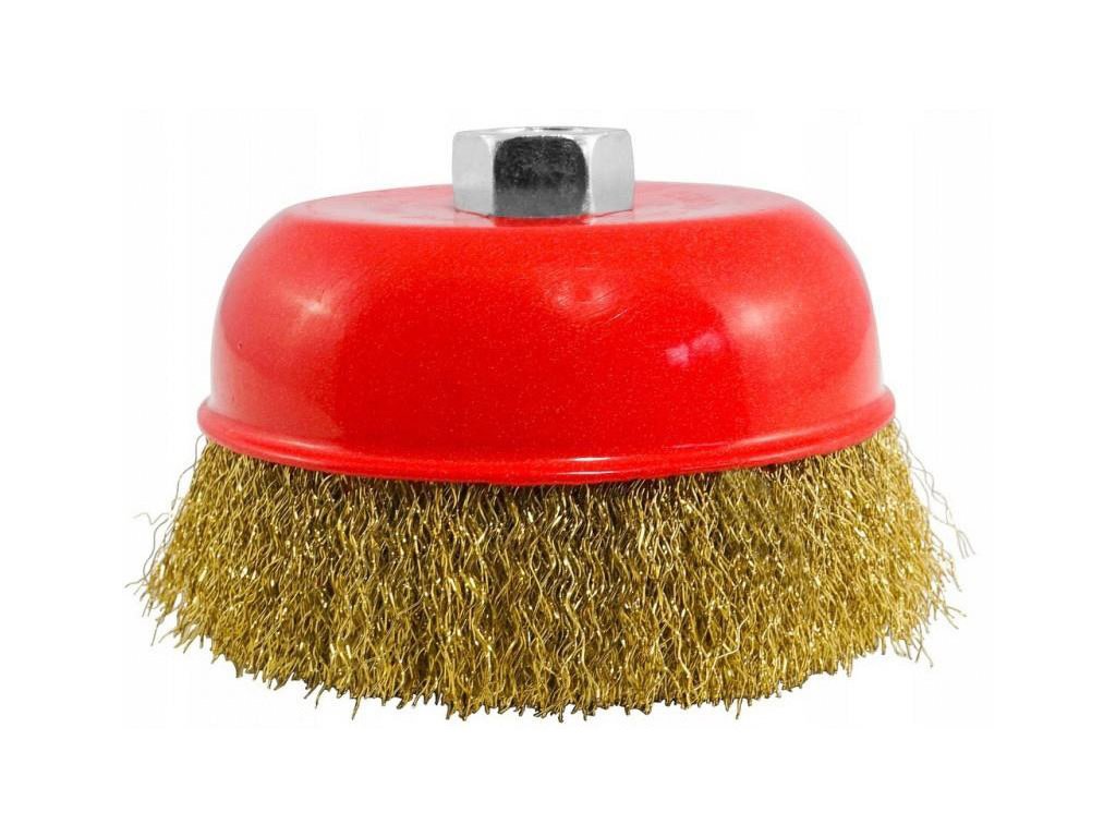 Čelná drôtená kefa na uhlovú brúsku s priemerom 125 mm vyrobená z mosadzného drôtu. Nástroj je určený najmä pre čistenie kovových povrchov, odstraňovanie starých náterov, lakov, hrdze a tiež na čistenie zvarov.