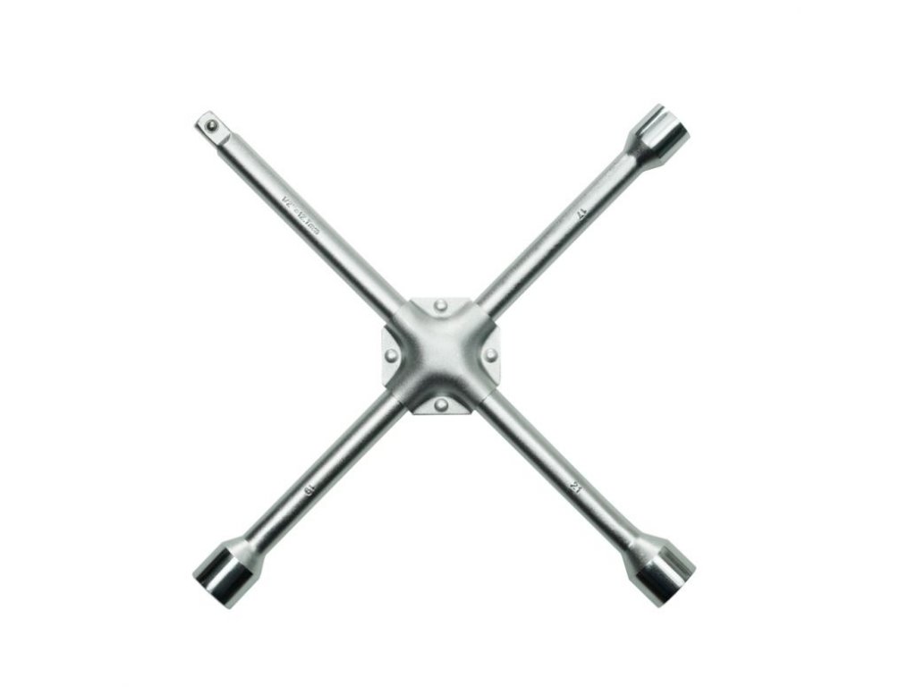 Krížový kľúč na kolesá vyrobený z CrV ocele (chróm-vanád), ktorý poskytuje dostatočnú pevnosť a odolnosť proti korózii. Kľúč má saténový poťah, ktorý zlepšuje priľnavosť pri práci. Kľúč má 3 ramená so zásuvkami 17, 19, 21 mm a rameno so štvorhrannou montážou 1/2 "na pripevnenie ľubovoľnej zásuvky.