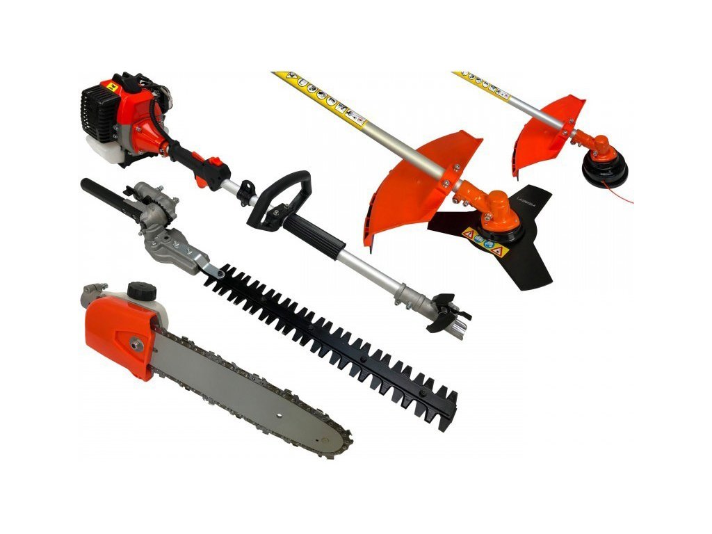 Krovinorez 4 v 1 s výkonom 0,8 kW sa dá použiť na kosenie trávy, opilovanie vetiev a strihanie živých plotov. Motor novej generácie zaručuje spoľahlivé naštartovanie a nepretržitú prevádzku. Multifunkčný krovinorez s množstvom príslušenstva robí zo seba ideálneho pomocníka na väčšinu prác okolo domu či chaty. Krovinorez je vybavený antivibračným systémom, ktorý znižuje vibrácie a popruhom na rameno, ktorý zaisťuje komfort pri kosení aj na ťažko dostupných miestach. Profilovaná nastaviteľná rukoväť umožňuje ľahkú a pohodlnú prácu. Nadstavec na prerezávanie vetiev Vám umožňuje prerezávať vetvy stromov priamo zo zeme. Nožnice na živé ploty zaisťujú pohodlné a rýchle orezávanie vysokých a širokých živých plotov.