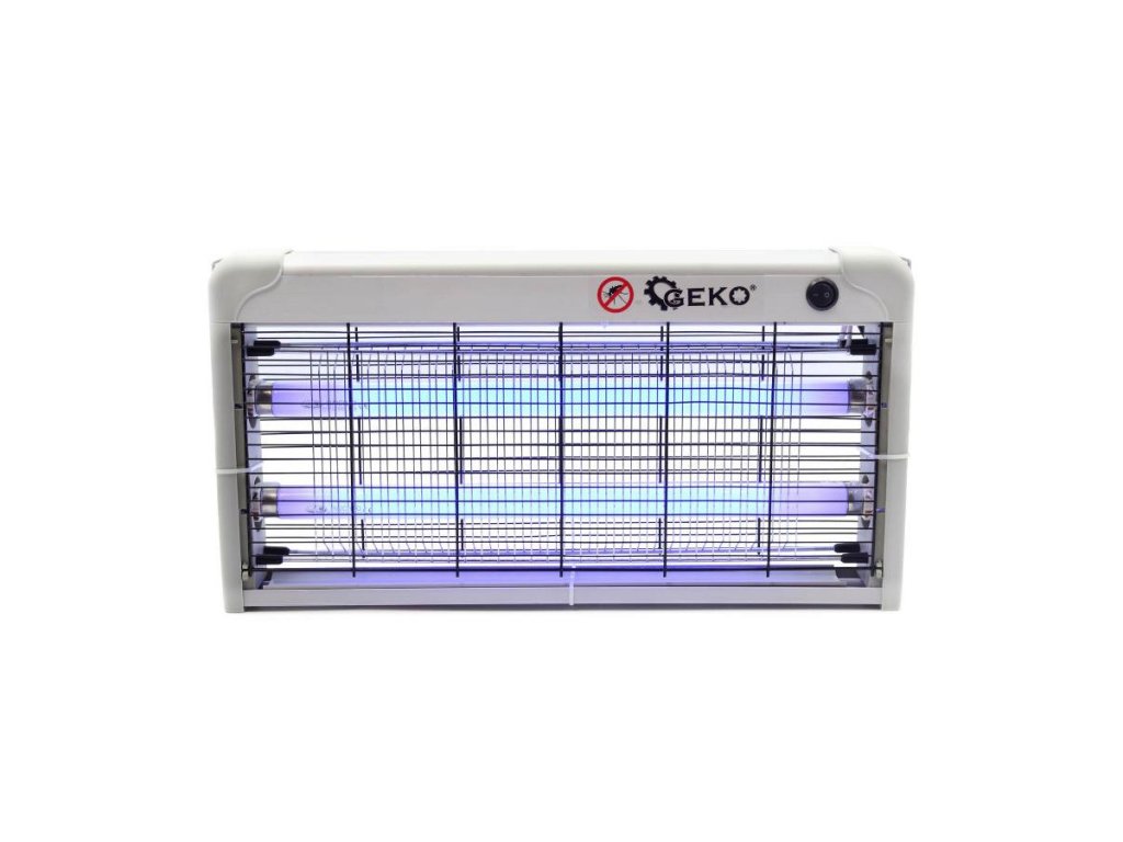 Lampa na ničenie hmyzu vybavená dvoma UV lampami. Lampa na ničenie hmyzu je zariadenie, ktoré priťahuje a zabíja hmyz vďaka žiarivkám produkujúcim atraktívne UV-A žiarenie, ktoré je pre ľudí a domáce zvieratá úplne bezpečné. Ultrafialové vlny produkované žiarivkami lákajú lietajúci hmyz a potom ho neutralizujú vďaka elektrickej sieti pod napätím. Súčasťou je závesná reťaz a odnímteľná vanička pre mrtvy hmyz vďaka ktorej sa lampa jednoducho čistí.