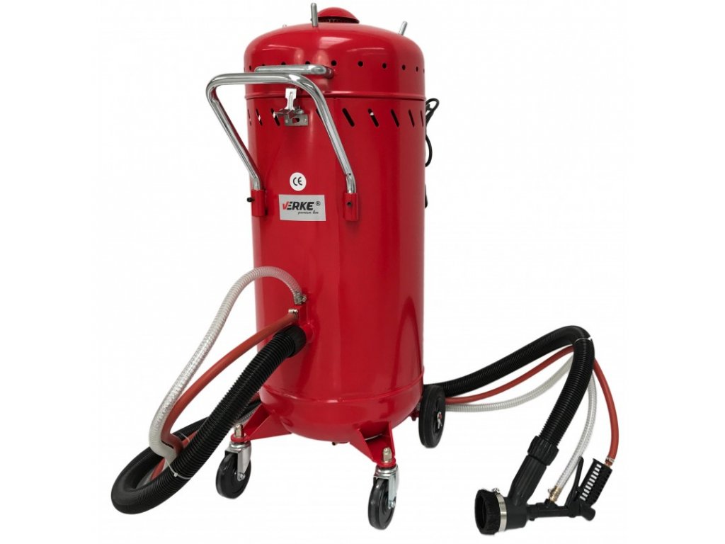 Mobilná pieskovačka so 105-litrovou nádržou, ktorá umožňuje rýchle a presné čistenie a brúsenie kovových prvkov v polootvorenom cykle. Zariadenie je vybavené odsávaním prachu s rekuperáciou, ktorá vracia časť brúsneho materiálu späť do zbernej nádoby. Jednoduchá a robustná konštrukcia zabezpečuje optimálnu životnosť zariadenia. Plastové kolieska a prídavná rukoväť zvyšujú ergonómiu a komfort pri práci.