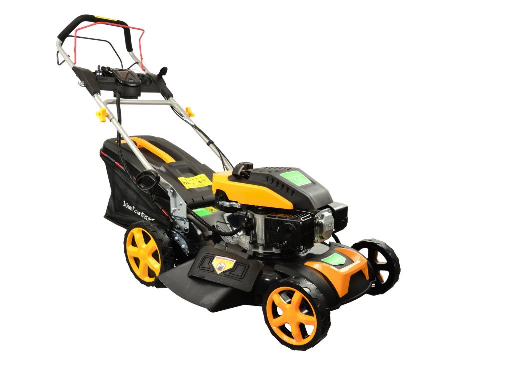 Motorová kosačka na trávu má motor s objemom 196cm3 a maximálnym výkonom 5kW. Kosačka má elektrické aj ručné štartovanie motora, pre ešte menšiu námahu pri práci je vybavená pojazdom. Pomocou veľkým kolesám a pojazdu sa kosenie stáva príjemné a jednoduché. Výška kosenia je nastaviteľná v 8 stupňoch od 25 do 70 milimetrov. Pokosenú trávu je možné vyhadzovať do strany alebo do zadu do objemného 60 litrového zberného koša. Ďalšou funkciou kosačky je mulčovanie - nasekanie trávy na drobno ktorá sa nezbiera, čo slúži zároveň ako hnojivo. Kosačka disponuje inovatívnym systémom čistenia vnútorných priestorov, ktorý spočíva v pripojení záhradnej hadice ku kosačke a spustením kosenia na mieste, čím dochádza k jej opláchnutiu a vyčisteniu.