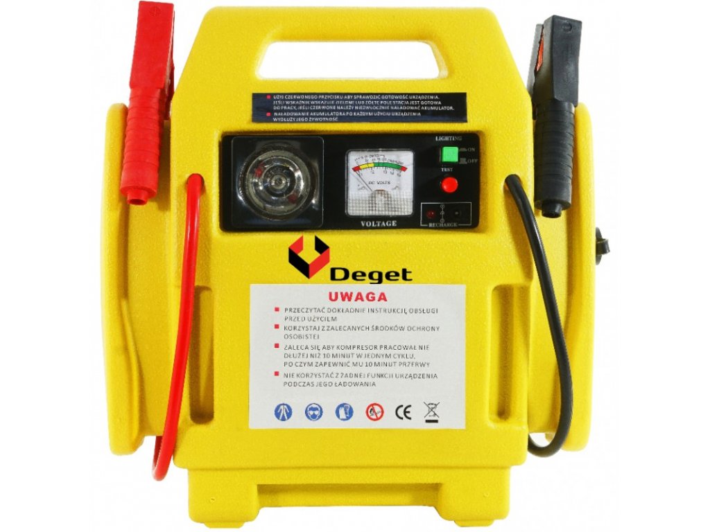 Multifunkčná nabíjačka s nabíjacím napätím 12 V je vybavená funkciou ŠTART so štartovacím prúdom 900 A, ktorý umožňuje naštartovanie vozidla s vybitou batériou. Pomocou svojej malej veľkosti umožňuje ľahkú prepravu v kufri alebo pod sedadlom automobilu. Kapacita batérie 7 Ah poskytuje dlhú dobu osvetlenia halogénovou žiarovkou namontovanou v kryte. Multifunkčná nabíjačka je vybavená 12 V DC zásuvkou, vstavanou halogénovou žiarovkou 3W, štartovacou funkciou s prúdom 900 A a vstavaným kompresorom.