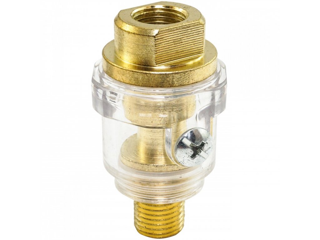 Nádobka na pridávanie pneumatického oleja do prúdu stlačeného vzduchu, ktorým sa poháňa pneumatické náradie.