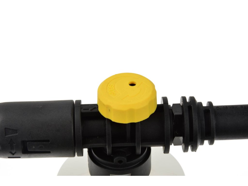 Mosadzná napeňovacia dýza pre vysokotlakové čističe značky Kärcher zo série K. Mosadzné prevedenie trysky je zárukou dlhej životnosti a bezproblémového používania. Napeňovacia dýza má zásobník, ktorý má objem 700 ml a má široké využitie pri čistení a umývaní. Výhodou externej napeňovacej dýzy je možnosť použiť aj agresívne čistiace prostriedky, tieto sa nedostávajú priamo do vnútorného obehu čističa. Napeňovacia tryska má možnosť regulácie šírky vodného lúča a množstva pridávanej chémie.