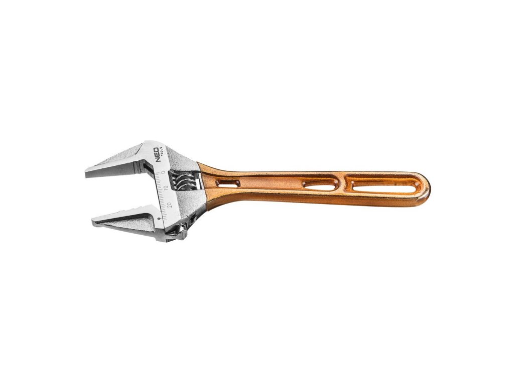 Nastaviteľný kľúč NEO je kovaný z odolnej chrómovo-vanádiovej ocele. Vyznačuje sa predĺženými, profilovanými čeľusťami s veľmi širokým rozsahom nastavenia a malou hrúbkou hlavice kľúča, ktorá uľahčuje prácu v ťažko prístupných miestach. Skrátená rukoväť, pri dodržaní širokého rozsahu rozstupu čeľustí umožňuje prácu s kľúčom v miestach s obmedzeným priestorom. Kľúč má systém ochrany skrutkovaných prvkov – sila nie je nasmerovaná priamo na okraj skrutky alebo matice. Vďaka špeciálnemu dizajnu rukoväte je kľúč až o 30 % ľahší ako štandardný nastaviteľný kľúč. Rukoväť potiahnutá protišmykovým plastom zaručuje pevnosť uchopenia a bezpečnú prácu. Kvalita nástrojov potvrdená zárukou od výrobcu na 25 rokov . Značka NEO spĺňa očakávania odborníkov.