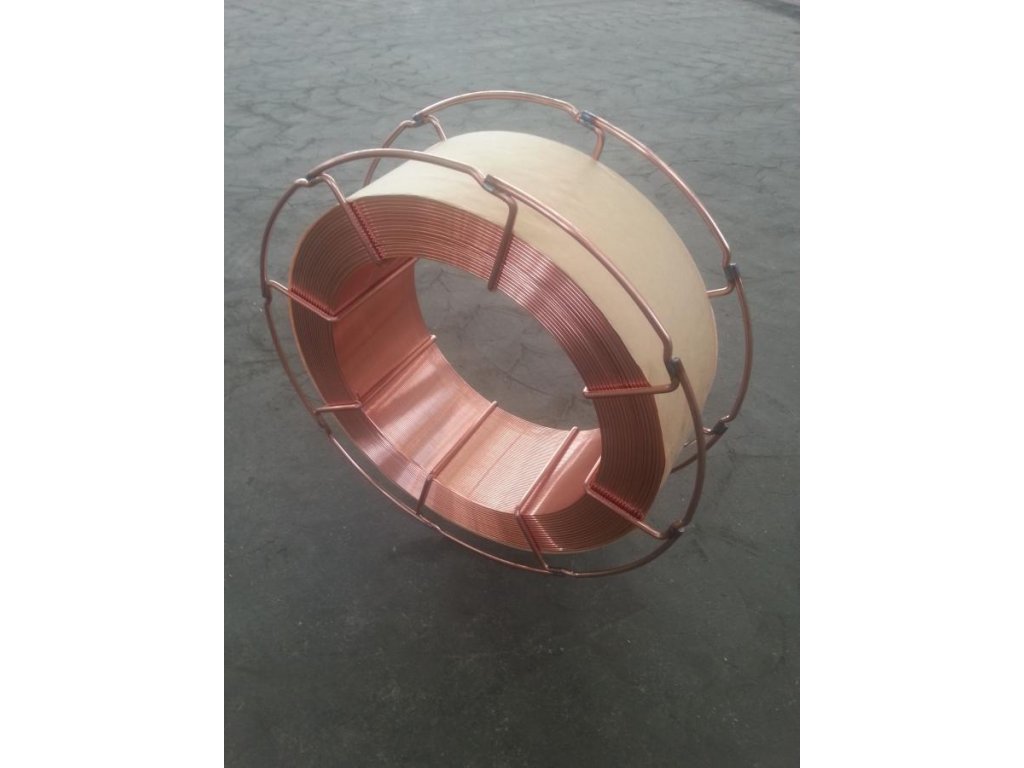 Oceľový drôt s priemerom 0,8 mm. Krytý meďou na oceľovej cievke.