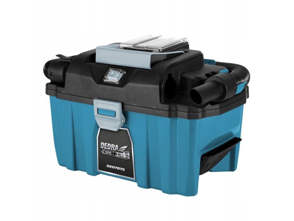 Akumulátorový kufríkový vysávač DED7075 je určený pre suchú a mokrú prevádzku (extrakcia vody). Nádrž má objem 10 L a je vyrobená z odolného plastu.