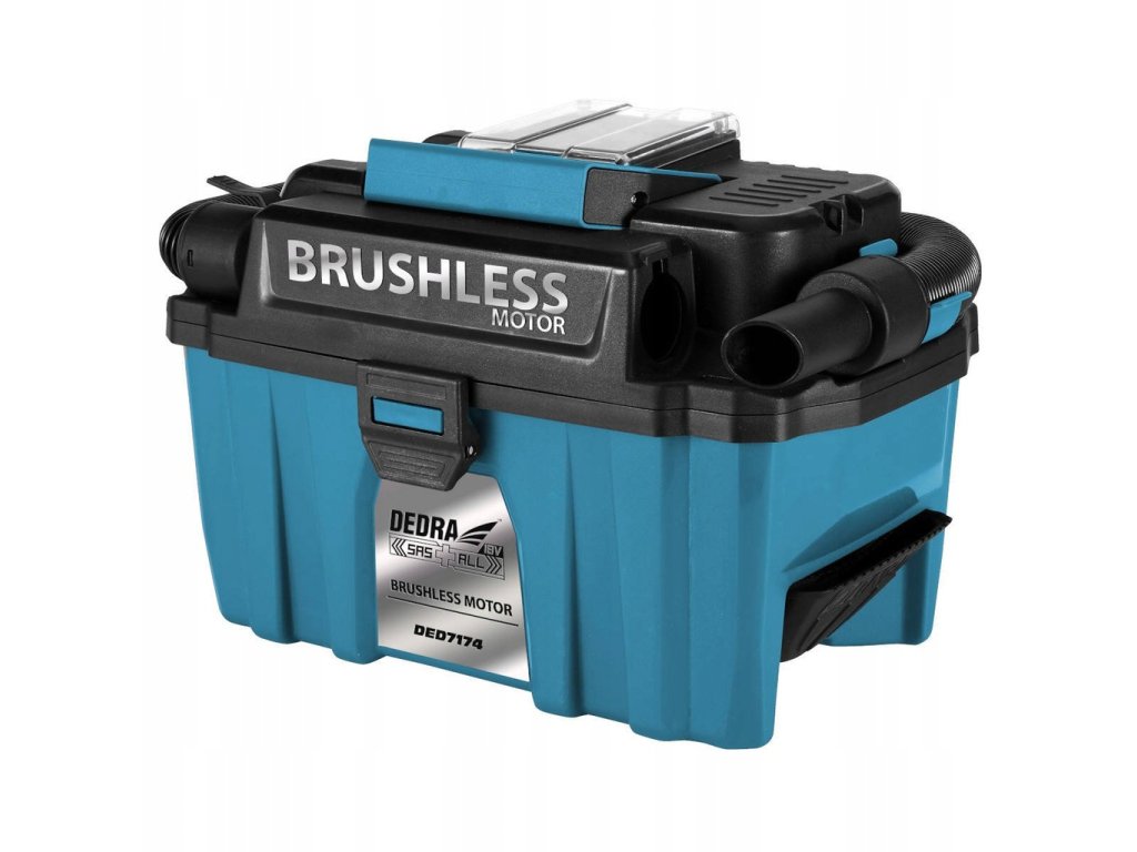 Akumulátorový kufríkový vysávač DED7174 je určený pre suchú a mokrú prevádzku (extrakcia vody). Zariadenie má bezkartáčový motor, ktorý je účinnejší ako tradičné motory kief.