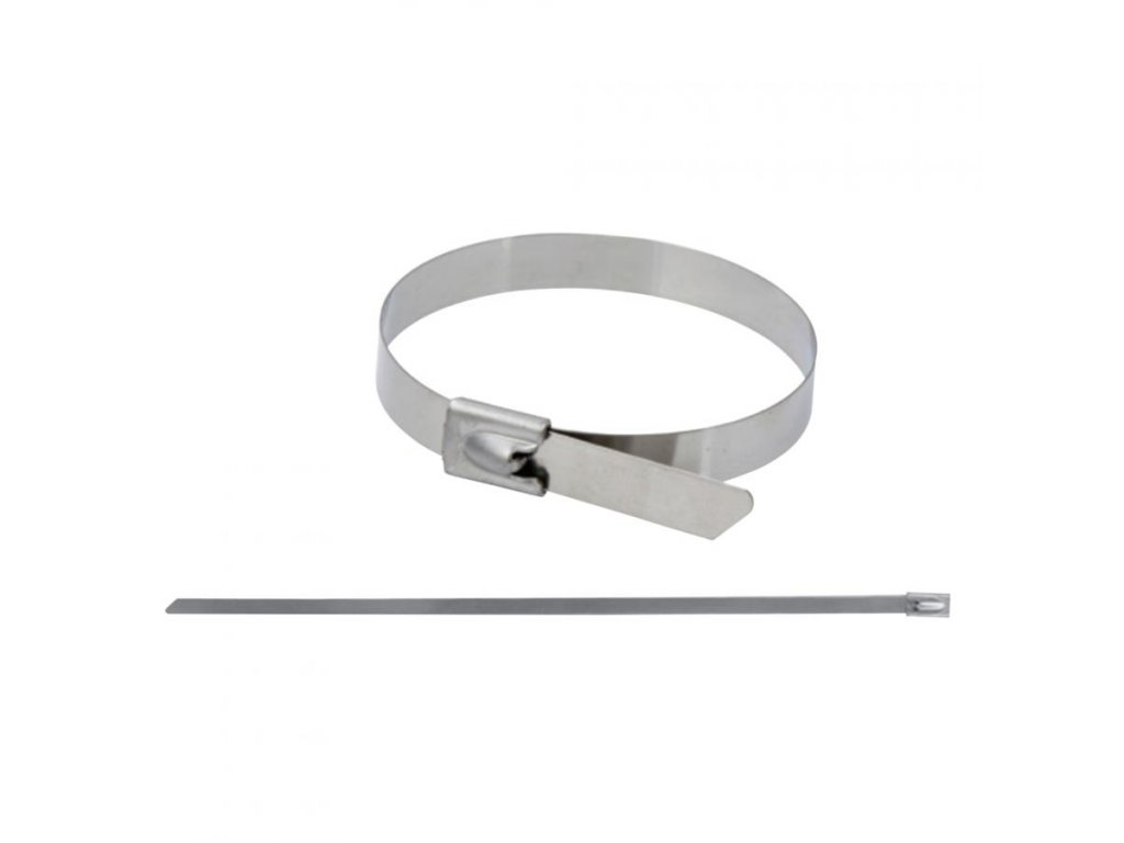 Viazacia páska vyrobená z nehrdzavejúcej ocele. Odolná voči UV žiareniu.