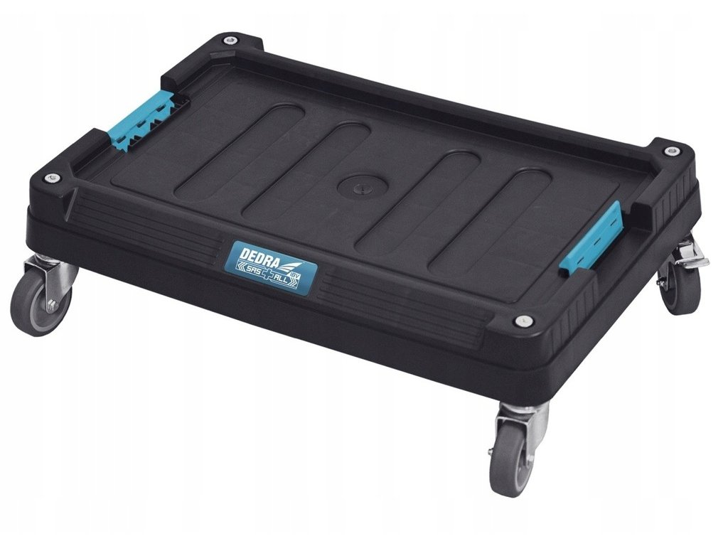 Je to ideálny základ pre stavbu mobilných súprav na použitie v dielni, garáži alebo doma. Vďaka pogumovaným kovovým kolesám s brzdami je platforma pre skrinky na náradie systému DEDRA SAS + mimoriadne mobilná.