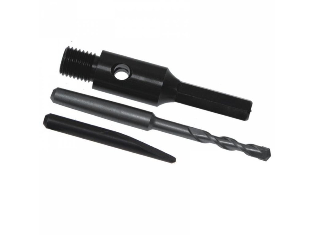 Sada adaptéra / redukcie, pilotného vrtáka a razidla pre diamantové jadrá DEDRA H1220-H1223 a H1235-H1241. Adaptér / redukcia vďaka šesťhrannému držiaku HEX je kompatibilný so všetkými zariadeniami, ktoré majú tento typ držiaka.