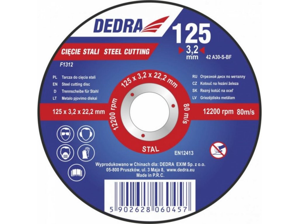 Kotúč rezný na oceľ od značky Dedra.