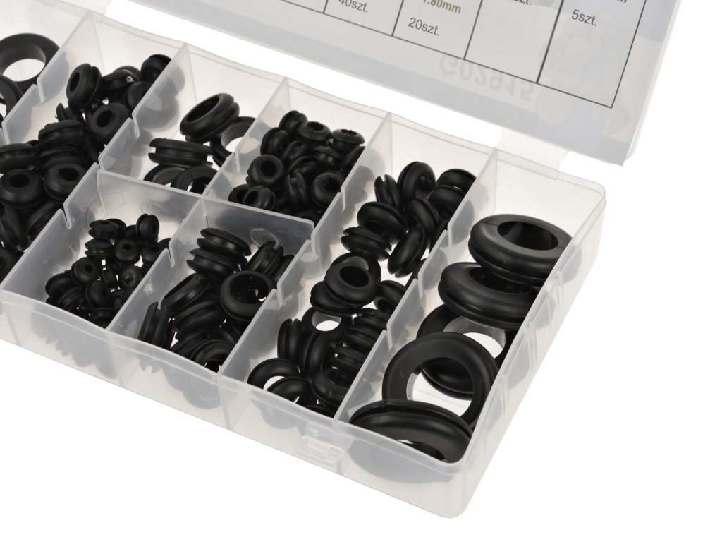 - Sada obsahuje 180 ks. gumových priechodiek s rôznymi rozmermi