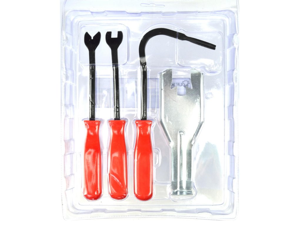 - Sada na demotnáž tapacíru a kľučiek umožňuje jednoduchú demontáž klipov čalúnenia, bez rizika ich poškodenia.