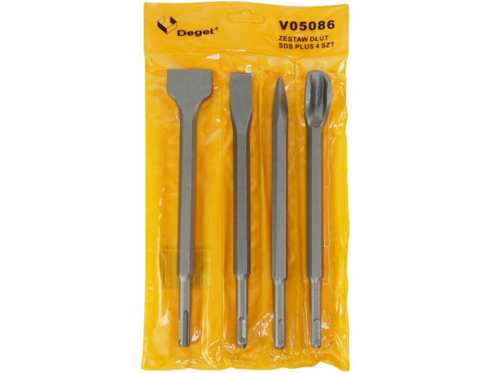 Sada sekáčov s upínaním SDS PLUS s dĺžkou 250 mm. Sekáče sú vyrobené z tvrdenej ocele čo zaručuje pevnosť a dlhú životnosť nástroja. Sada sekáčov obsahuje dva ploché sekáče, jeden špicatý sekáč a jedno dláto.