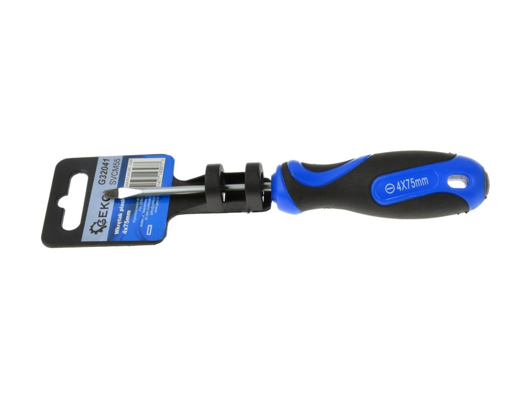 Plochý skrutkovač so šírkou hrotu 4 mm a s pracovnou dĺžkou 75 mm je určený na uťahovanie a povoľovanie skrutiek s plochou hlavičkou. Skrutkovač má pogumovanú rukoväť pre väčšiu istotu úchopu počas práce.