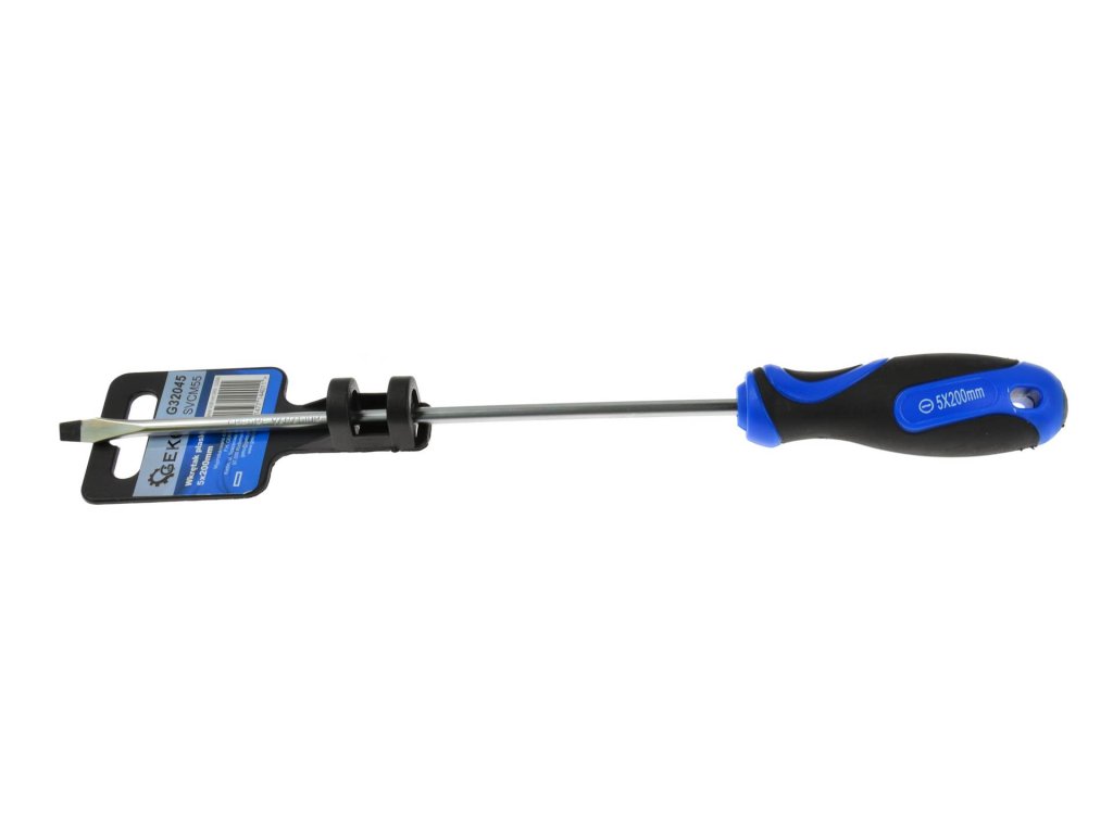 Plochý skrutkovač so šírkou hrotu 5 mm a s pracovnou dĺžkou 200 mm je určený na uťahovanie a povoľovanie skrutiek s plochou hlavičkou. Skrutkovač má pogumovanú rukoväť pre väčšiu istotu úchopu počas práce.