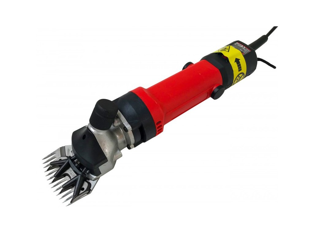 Elektrický strihací strojček na ovce s výkonom 350 W, dodávaný s prenosným puzdrom pre jednoduché skladovanie a prepravu.