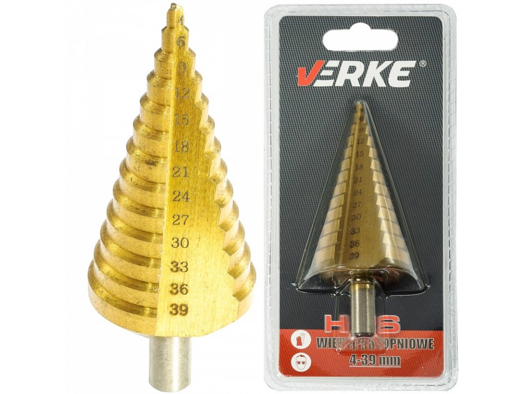 Stupňovitý vrták do kovu sa používa na vŕtanie kruhových otvorov v liatinových aj neliatinových oceľových plechoch, trubkách a profiloch do hrúbky steny 4mm, k navŕtavaniu a odhrotovaniu v jednej pracovnej operácií. Je možné použiť tiež pre vŕtanie do mäkkých materiálov, napr. dreva, plastu a plexiskla. Kuželový vrták je určený pre plynulé a bezhrotové vŕtanie a navŕtavanie otvorov bez deformácie plechu. Vrtáky je možné znovu naostriť.