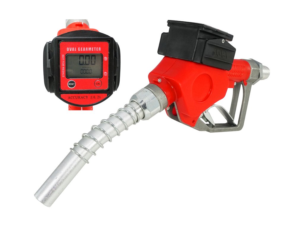 Tankovacia pištoľ je vybavená LCD digitálnym prietokomerom, ktorá je vhodná pre prečerpávanie oleja, nafty a všetkých ropných agregátov. V prípade, že sa nádrž preplňuje pištol automaticky prestane dávkovať palivo.
