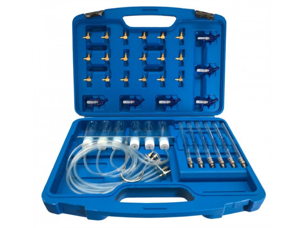 Tester vstrekovania Common Rail určený na meranie prietoku paliva vstrekovacieho systému naftových motorov so systémom vstrekovania COMMON RAIL max do šiestich valcov. Pomocou sady jednoducho a rýchlo zistíte zapchanie opotrebenie alebo odchýlku od správneho fungovania. Sada obsahuje adaptéry pre pripojenie k systémom BOSCH, DELPHI, DENSO, SIEMENS.