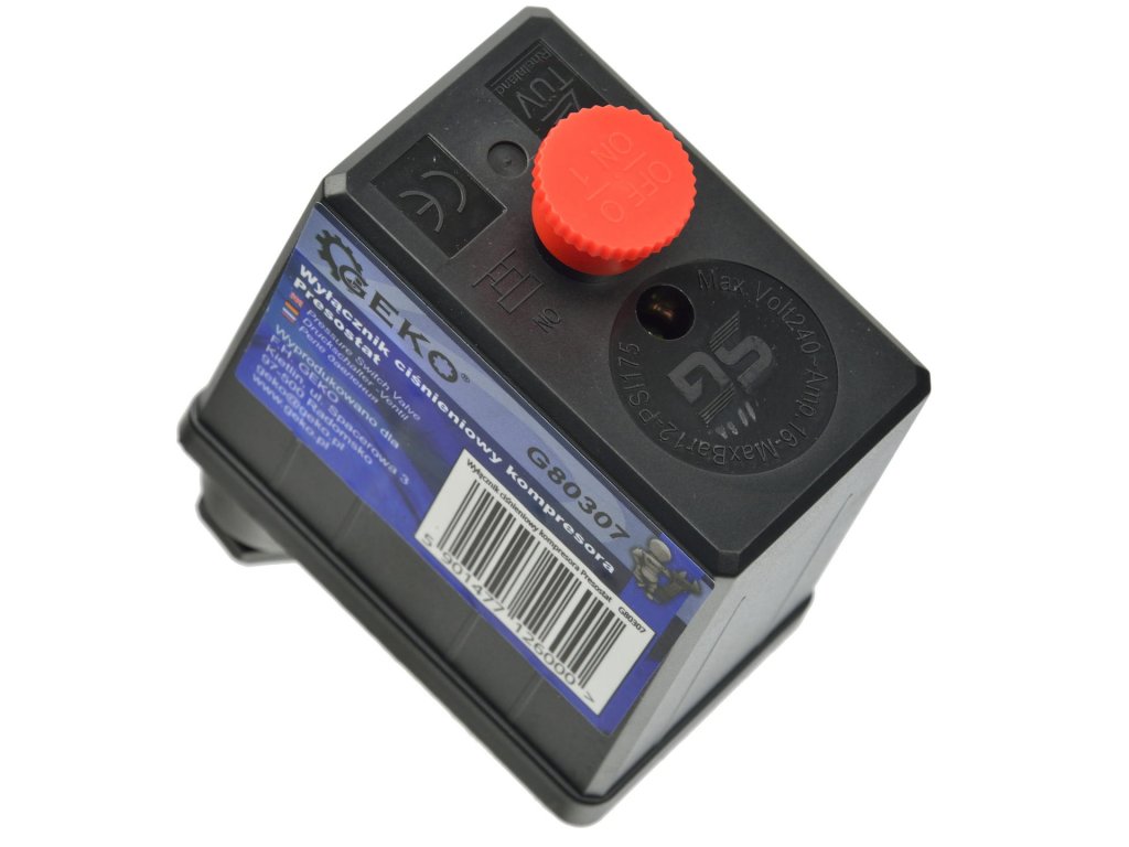 Tlakový spínač kompresora 12 bar - automaticky vypne kompresor, keď tlak dosiahne maximálnu hodnotu, a zapne ho, keď tlak poklesne.