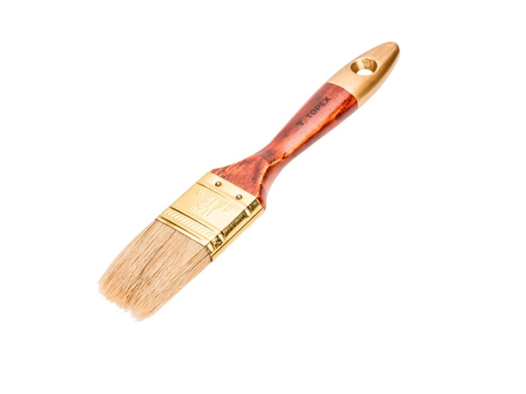 TOPEX Štetec maliarsky na akrylové farby, 1,5"Prírodné štetiny zlepšujú kvalitu štetca a zároveň zabráňujú vypadávaniu. Drevená lakovaná rukoväť dobre padne do ruky pre väčšie pohodlie pri práci. TOPEX je značka výborná pre domácich majstrov.Dodatočné parametre