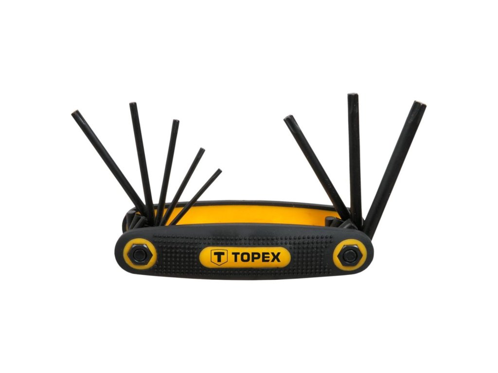 TOPEX Sada kľúčou torx T10 - T50, 8 ks. Celá sa je vyrobená z odolnej chromo - vanádiovej ocele, ktorá zaručuje dlhú životnosť výrobku. Plastová rukoväť s protišmykovou vrstvou materiálu zaisťuje pohodlie pri práci. Praktický dizajn rukoväte udržuje vždy celú sadu pokope. TOPEX je značka výborná pre domácich majstrov.Dodatočné parametre