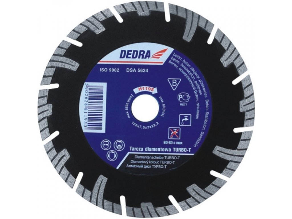 Turbo-T Diamantový rezný kotúč 230 mm/25,4mm určený pre betón, železobetón a piesok. Vhodný na suché aj mokré rezanie.