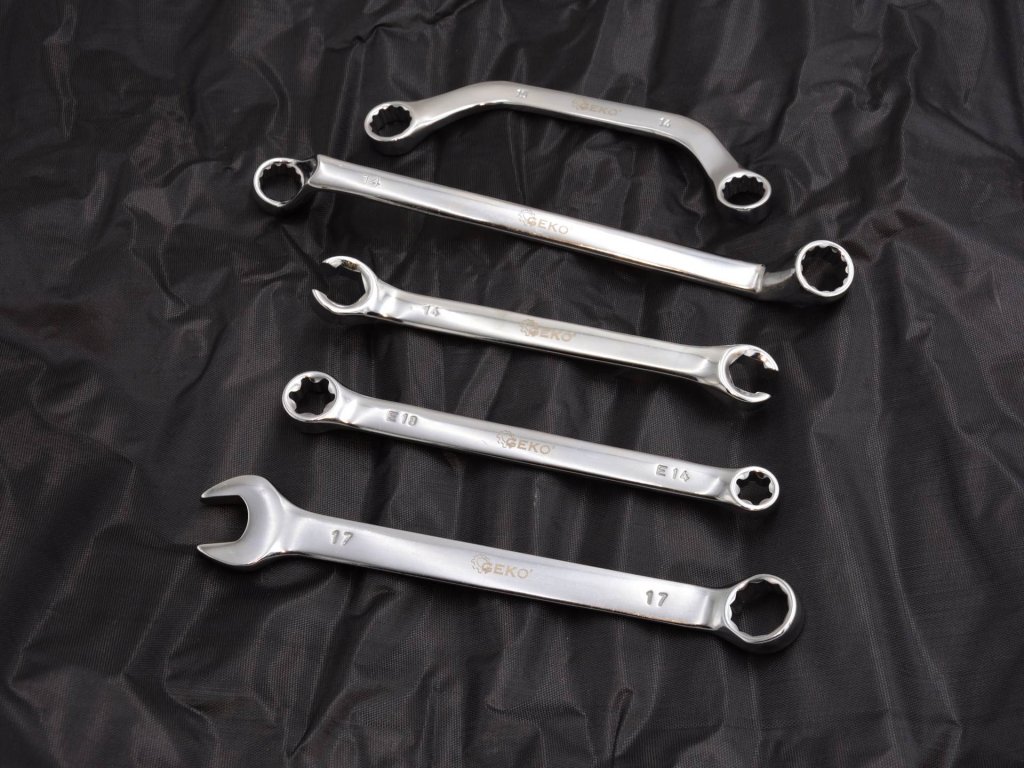- Kľúče očkové polootvorené: 8x10, 9x11, 10x12, 13x14, 15x17, 16x18
