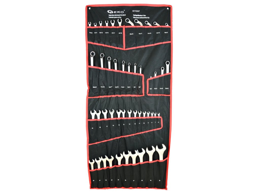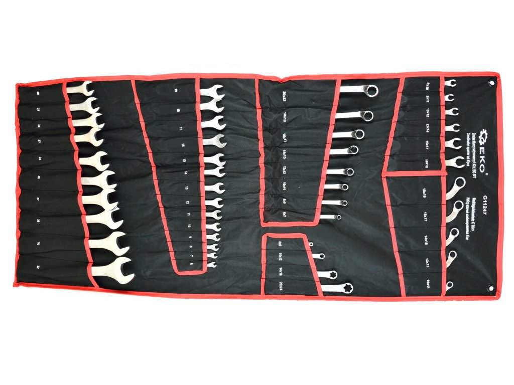 - Kľúče očkové polootvorené: 8x10, 9x11, 10x12, 13x14, 15x17, 16x18mm