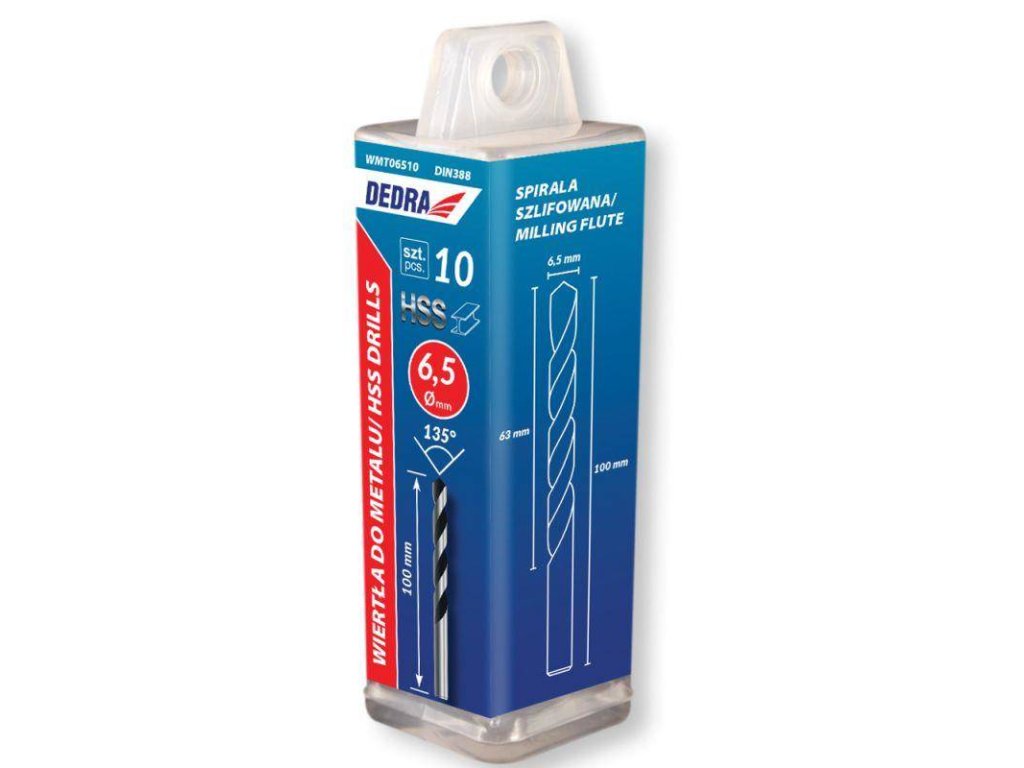 Kovový vrták s valcovou rukoväťou. Vrták je vyrobený z rýchloreznej ocele HSS (oceľ 4341). Vďaka zemnej špirále sa korisť efektívne prenáša na vonkajšiu stranu otvoru. Na spracovanie: oceľ, neželezné kovy, plasty.