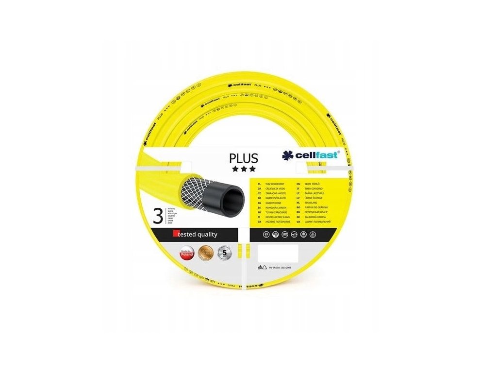 Profesionálna záhradná hadica PLUS CellFast je 3-vrstvová hadica s odolnou výstužou vyrobená z najkvalitnejšej priadze. Odolná voči UV žiareniu a usadzovaniu rias vo vnútri hadice.