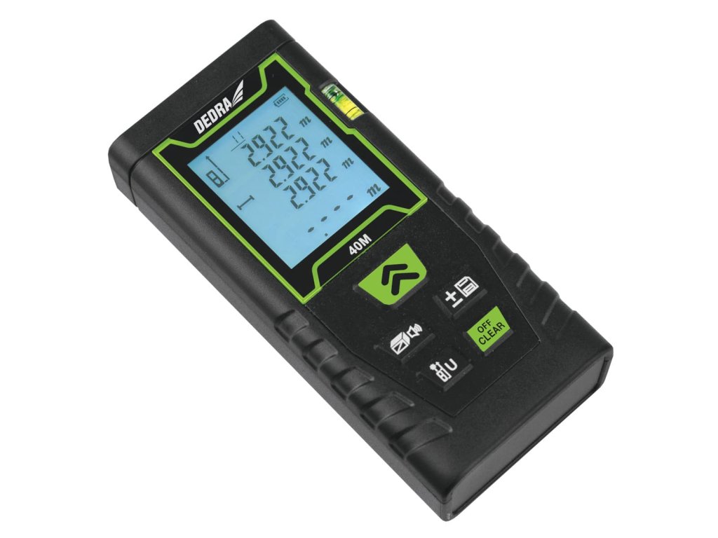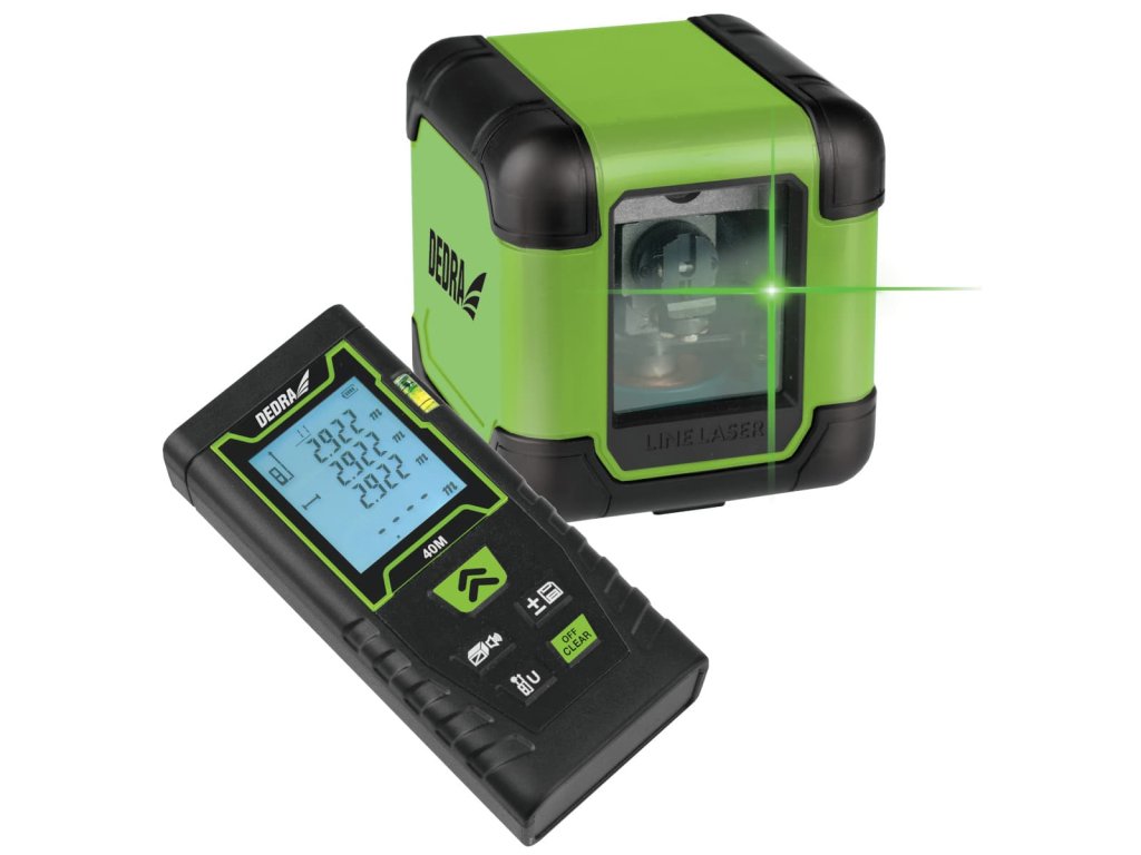 Súprava meracích nástrojov DEDRA MC0920, pozostávajúca z laserovej vodováhy a laserového diaľkomeru, je kompletným riešením pre širokú škálu presných prác. Laserová vodováha DEDRA MC0920 je nástroj, ktorý sa dá použiť nielen pri renovačných prácach v stavebníctve, ale aj pri zdobení stien a vešaní odevov.Laser možno použiťna automatické vyznačenie priečnych čiar. Dosah lasera je 30 m. Laser má samonivelačný systém 4°, ktorý nám umožňuje pracovať bez nutnosti ručnej kalibrácie lasera. Robustný kryt chráni laser pred náhodným poškodením. Použitie značkovej diódy OS RAM zaručuje vynikajúcu viditeľnosťlúča aj na slnku-zelená farba laserového lúča.
