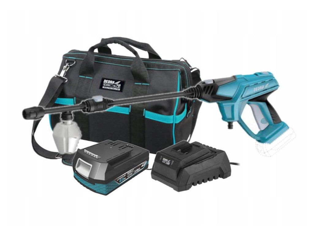Sada tlakového čističa Dedra DED7086L3, 35 barov, 18 V SAS + ALL + DED7032 Batéria 2,0 Ah SAS + ALL + DED7038 Nabíjačka SAS + ALL + DED7001 Taška na náradie SAS + ALL.