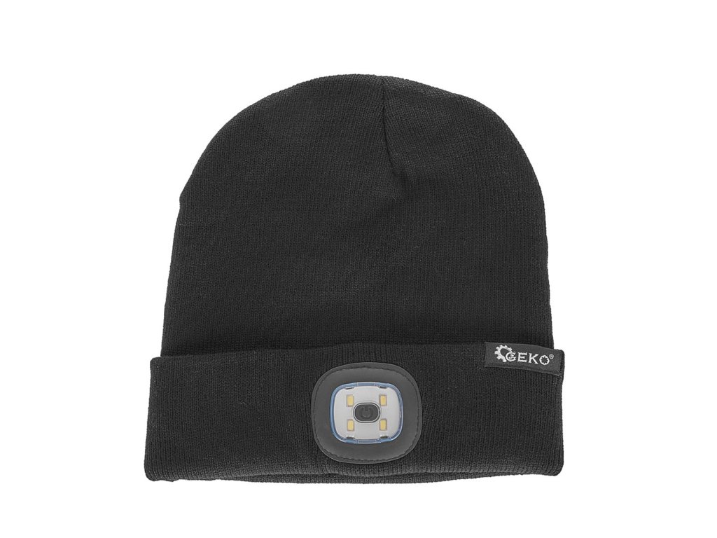 Zimná čiapka s nabíjateľným LED svetlom(čelovka) čierna