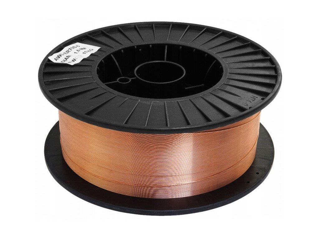 Medený zvárací drôt s priemerom 1,0 mm na plastovej cievke, s prídavkom mangánu a kremíka, určený pre zváranie MIG / MAG.