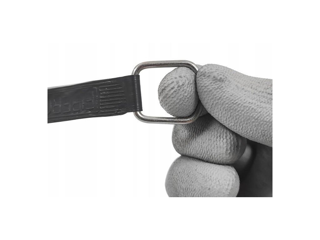 - Páska končí kovovým očkom, umiestneným v plastovej kazete, vybavenej navíjacou kľukou.